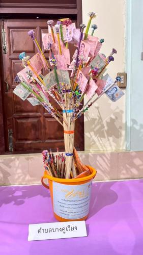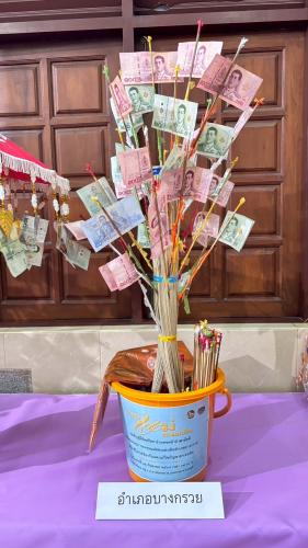 วันที่ 12 กันยายน 2568 เวลา 9:00 น. ณ วัดโพธิ์เอน หมู่ที่ 6 ตำบลบางขุนกอง อำเภอบางกรวย จังหวัดนนทบุรี ว่าที่ร้อยตรียุทธภูมิ จับจิตต์ นายอำเภอบางกรวย เป็นประธานในพิธีทอดผ้าป่าสมทบเครือข่ายกองทุนแม่ของแผ่นดินระดับอำเภอ นางสาวสุภาวดี เมฆฉิม ผู้อำนวยการกลุ่มงานสารสนเทศการพัฒนาชุมชน นายอุดมศักดิ์ ปานศรี พัฒนาการอำเภอบางกรวย นายบัญชา ยิ้มถิน ประธานเครือข่ายกองทุนแม่ของแผ่นดินระดับอำเภอบางกรวย ร่วมกับหัวหน้าส่วนราชการอำเภอบางกรวย เจ้าหน้าที่อำเภอบางกรวย เจ้าหน้าที่ตำรวจอำเภอบางกรวย เจ้าหน้าที่พัฒนาชุมชนอำเภอ/จังหวัด เครือข่ายกองทุนแม่ของแผ่นดิน กำนัน ผู้ใหญ่บ้าน ผู้ช่วยฯ กพสอ. กลุ่มสตรีตำบล ผู้นำอช. และประชาชนในพื้นที่