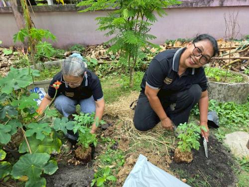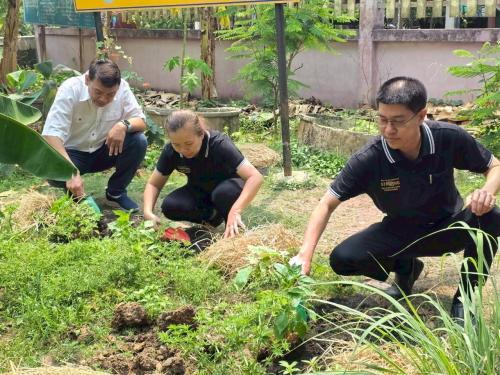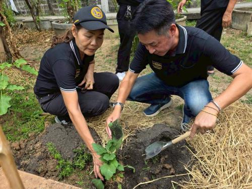 ในการนี้ นายอุดมศักดิ์ ปานศรี พัฒนาการอำเภอบางกรวย พร้อมด้วยเจ้าหน้าที่พัฒนาชุมชนอำเภอ กำนัน ผู้ใหญ่บ้าน ผู้นำอาสาพัฒนาชุมชน (อช.) และประชาชนในพื้นที่ ได้ร่วมกันดำเนินการปรับปรุงภูมิทัศน์และทำกิจกรรมปลูกผักสวนครัวอย่างพร้อมเพรียง